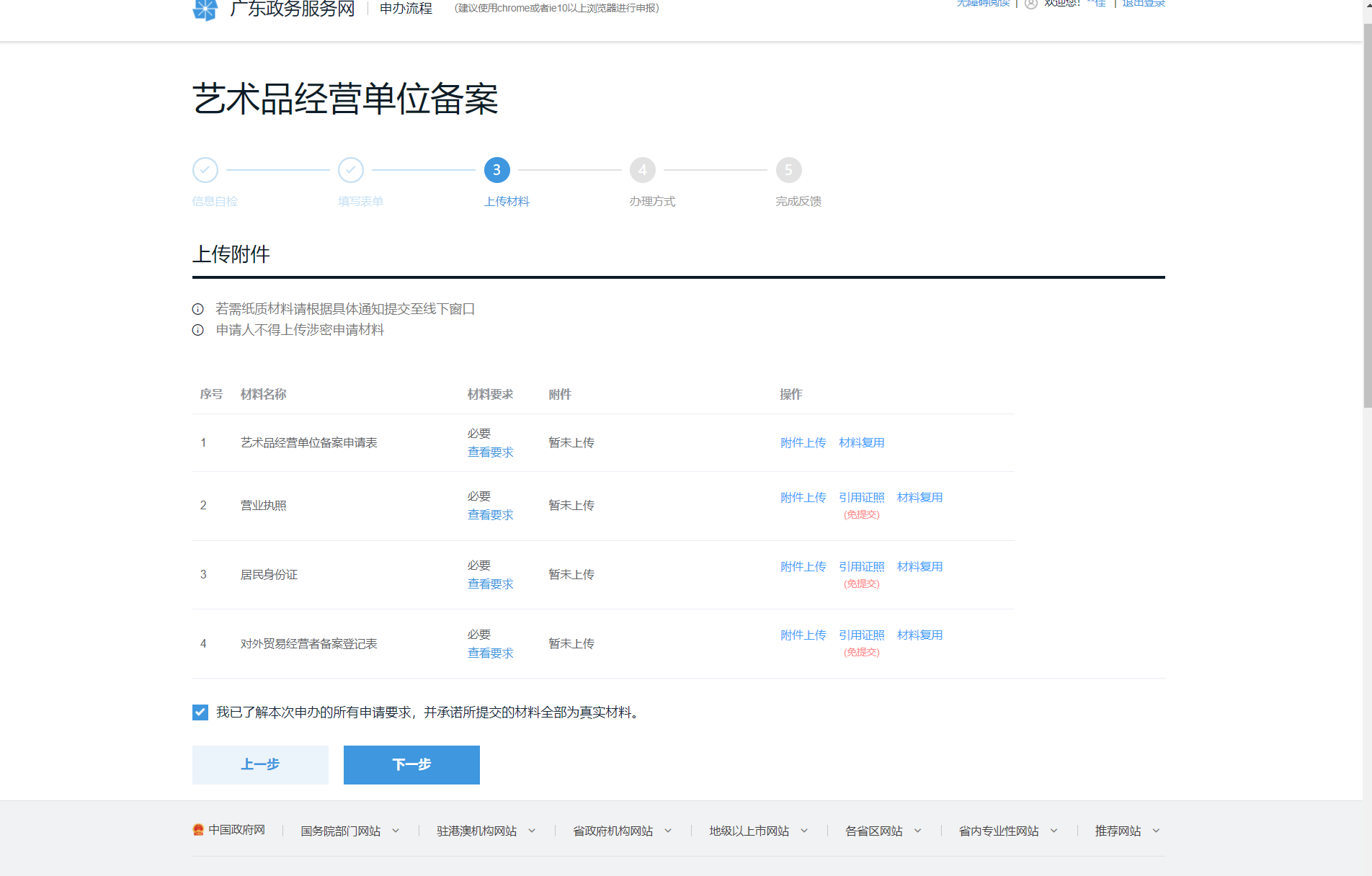 点击附件上传按钮上传电子版的申请材料,如下图: